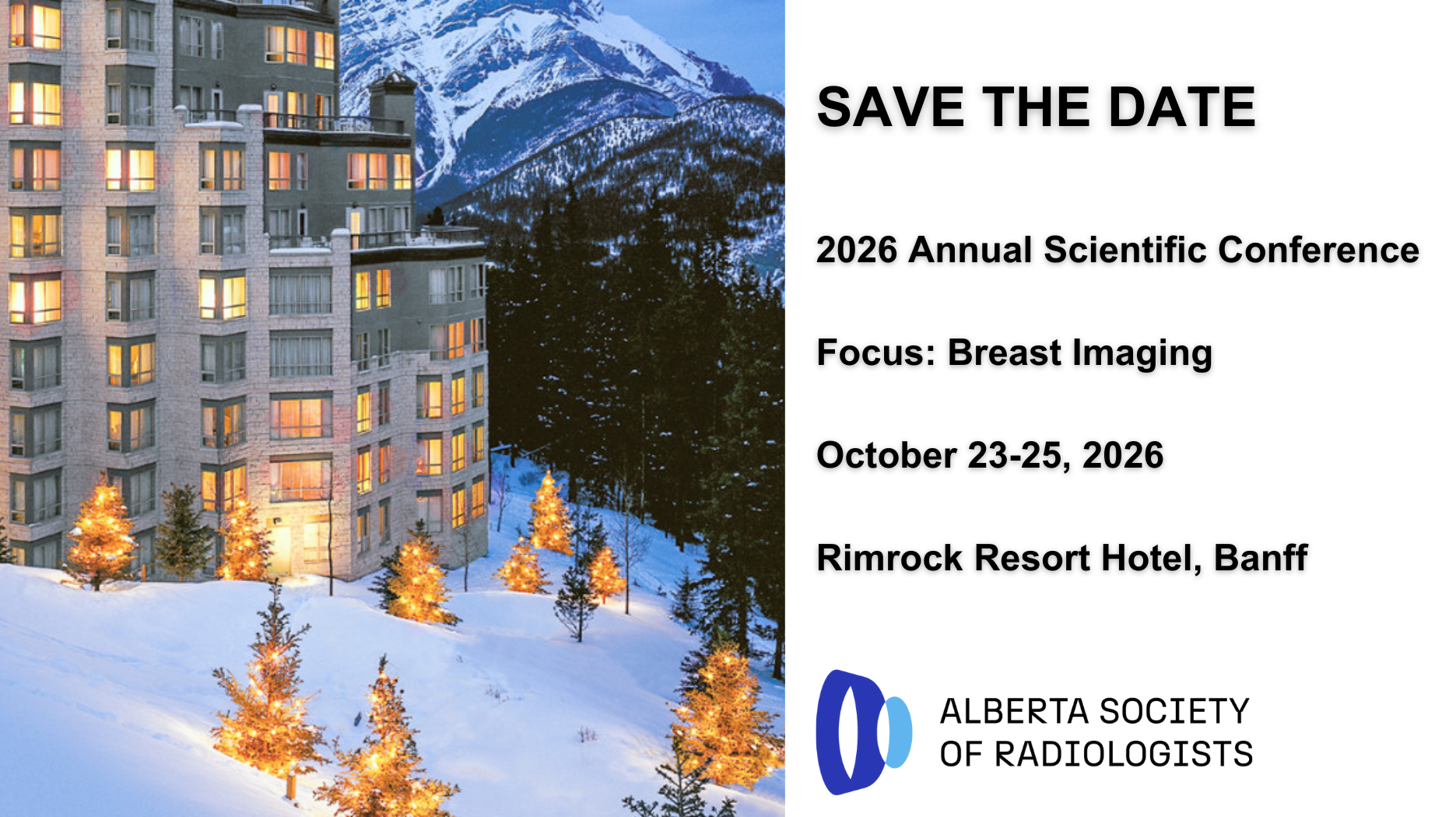 Save the Date - ASR's 2026 Annual Scientific Conference will be focused on breast imaging with engaging sessions, networking, celebration, and the beauty of Banff.